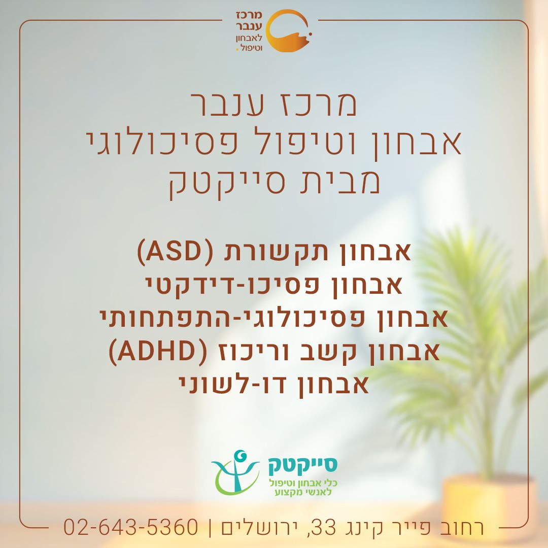 אנו מציעים מגוון אבחונים פסיכולוגיים כולל אבחון אוטיזם במרכז ענבר - מרכז האבחון החדש שלנו